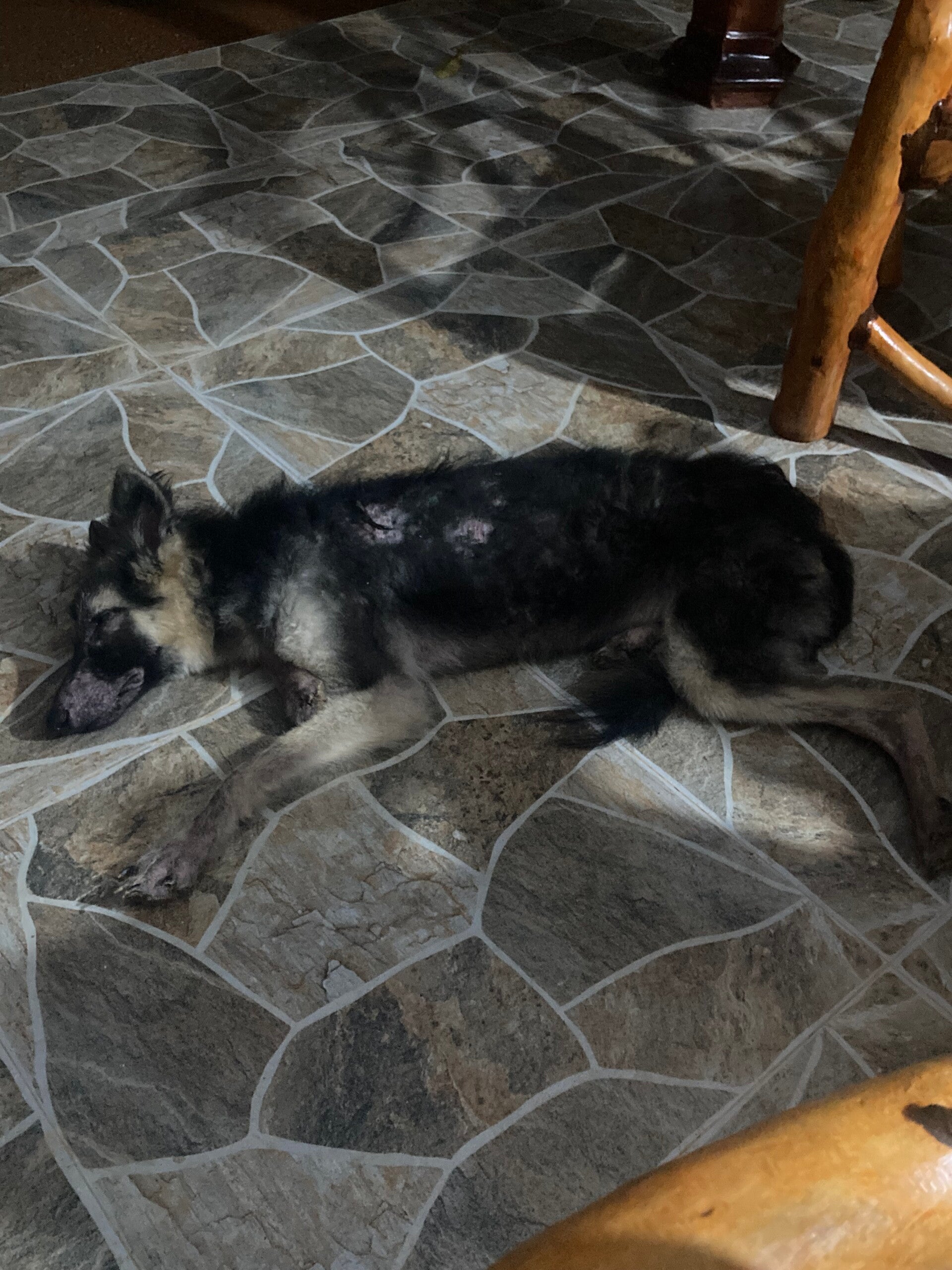 We were informed about a shepherd in our neighbourhood which is in very bad condition and locked in a cage without food. The family does not want her anymore because she is sick and they don’t have money. When we arrived at Bella’s place they let her out of her very dirty cage and there came such a skinny full of rash dog running towards us. Bella hasn’t gotten food for days (or weeks?). She was very weak and dehydrated but happy. Her face was smiling so much. She looked at us as if she has waited for us to get her out of this hell. Without saying a word she jumped in our TukTuk and from that day on she was our constant companion 🥰 We started to treat Bella against her bad rash and gave her much good food and love. She became a beautiful shepherd and our big Love ❤️ She was a very special dog. Always happy, always social with other dogs, Mummy for our Hope and over all she loved us so much! Bella came with us everywhere we went. She loved to ride the TukTuk with us.